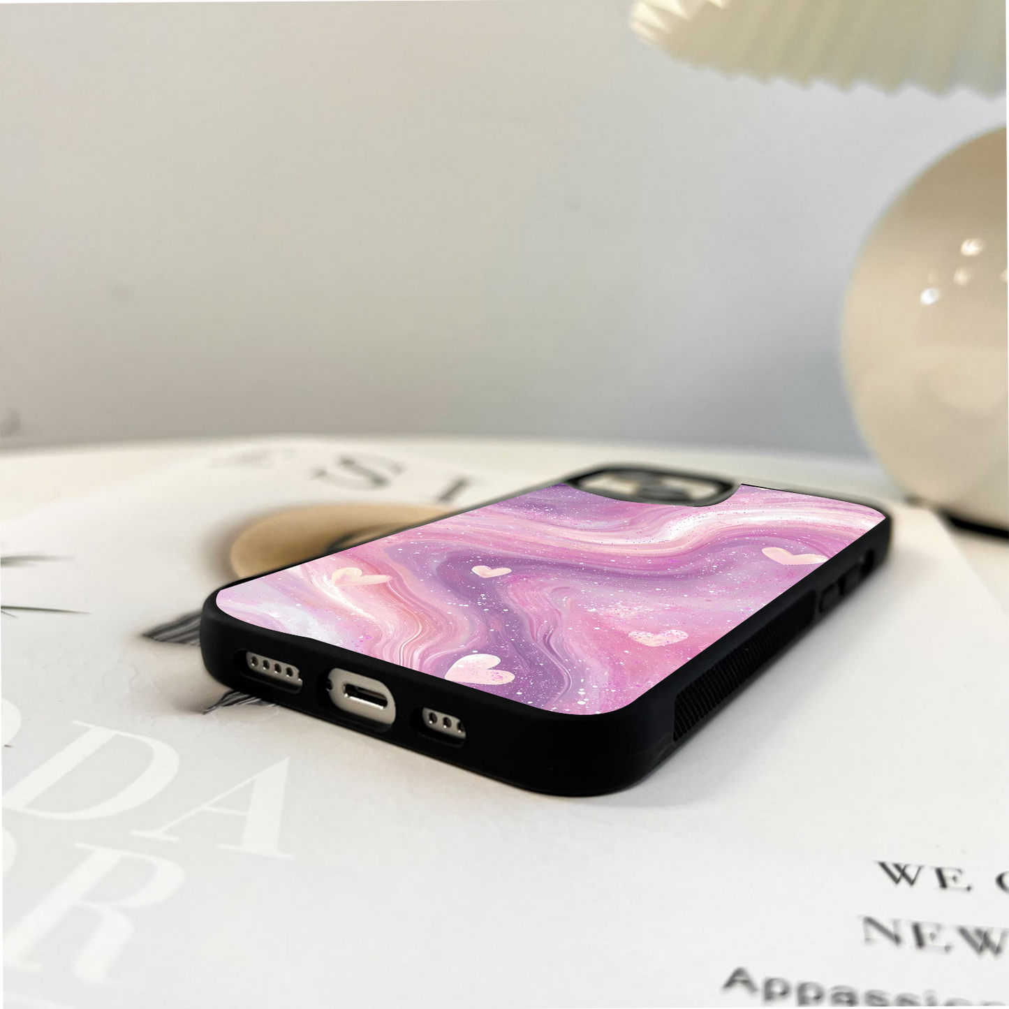 Glass Cases are just made beautiful without actual glitter or marble, The sides are silicon and back with Glossy Glass Finish.