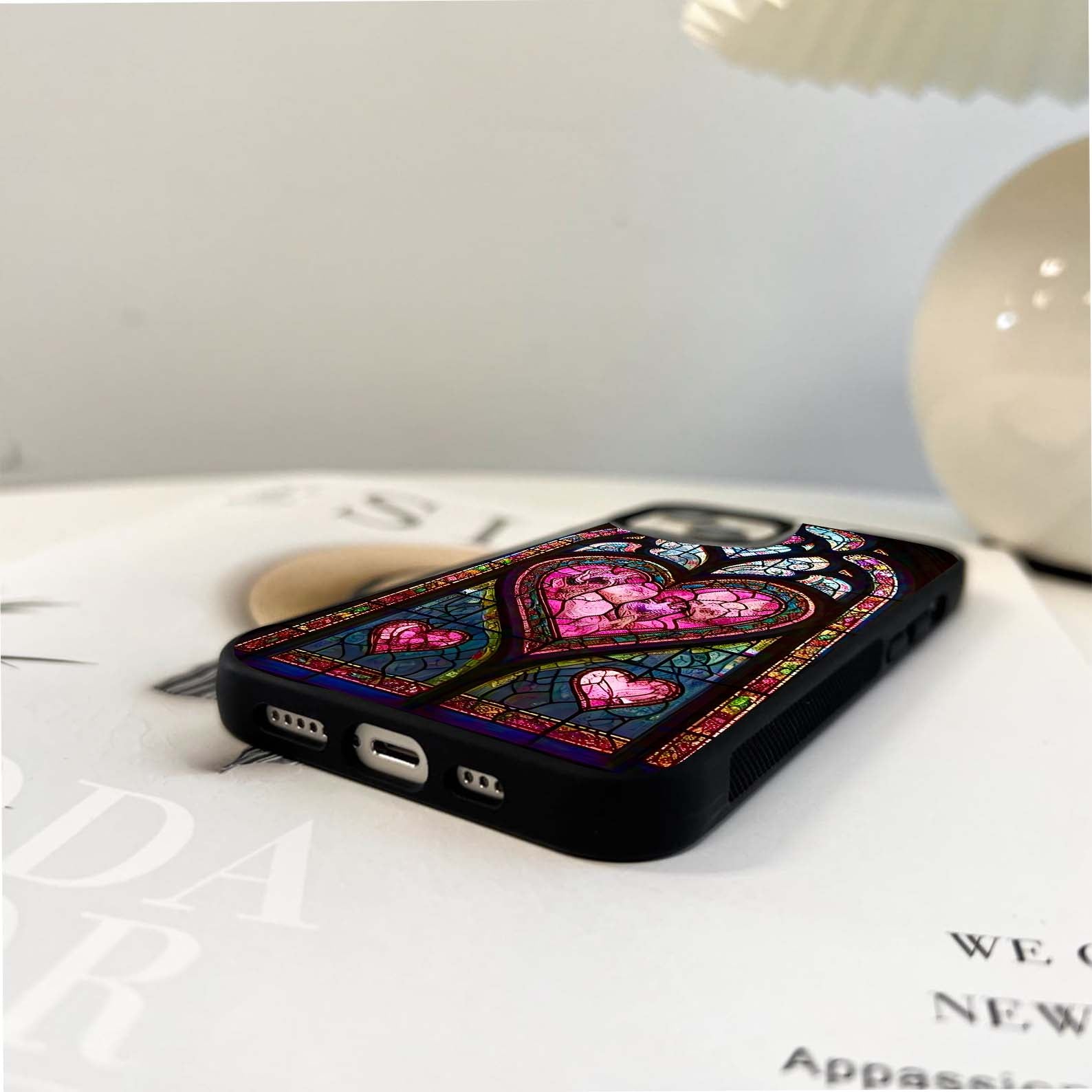 Pink Stained Glass Hearts Glass Case