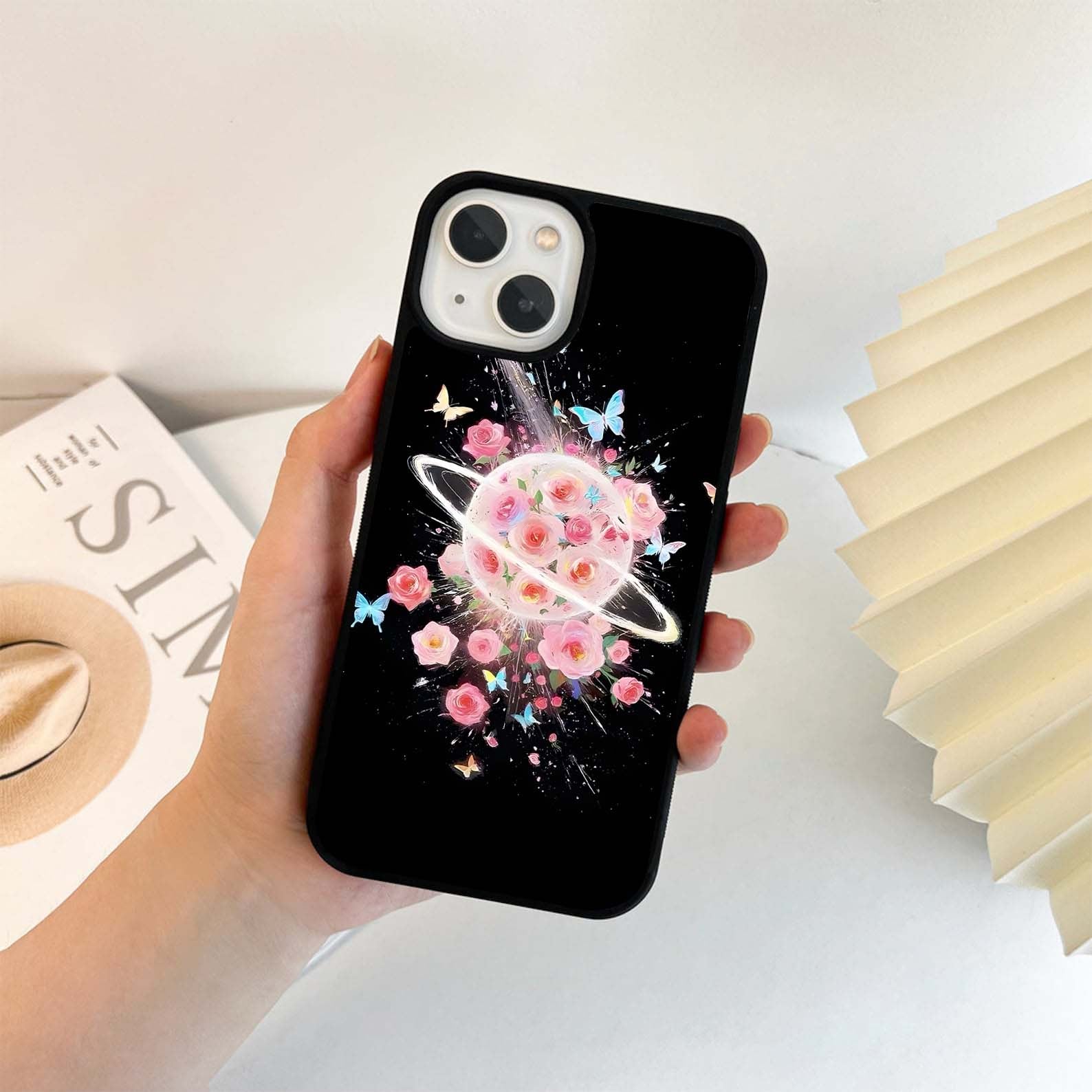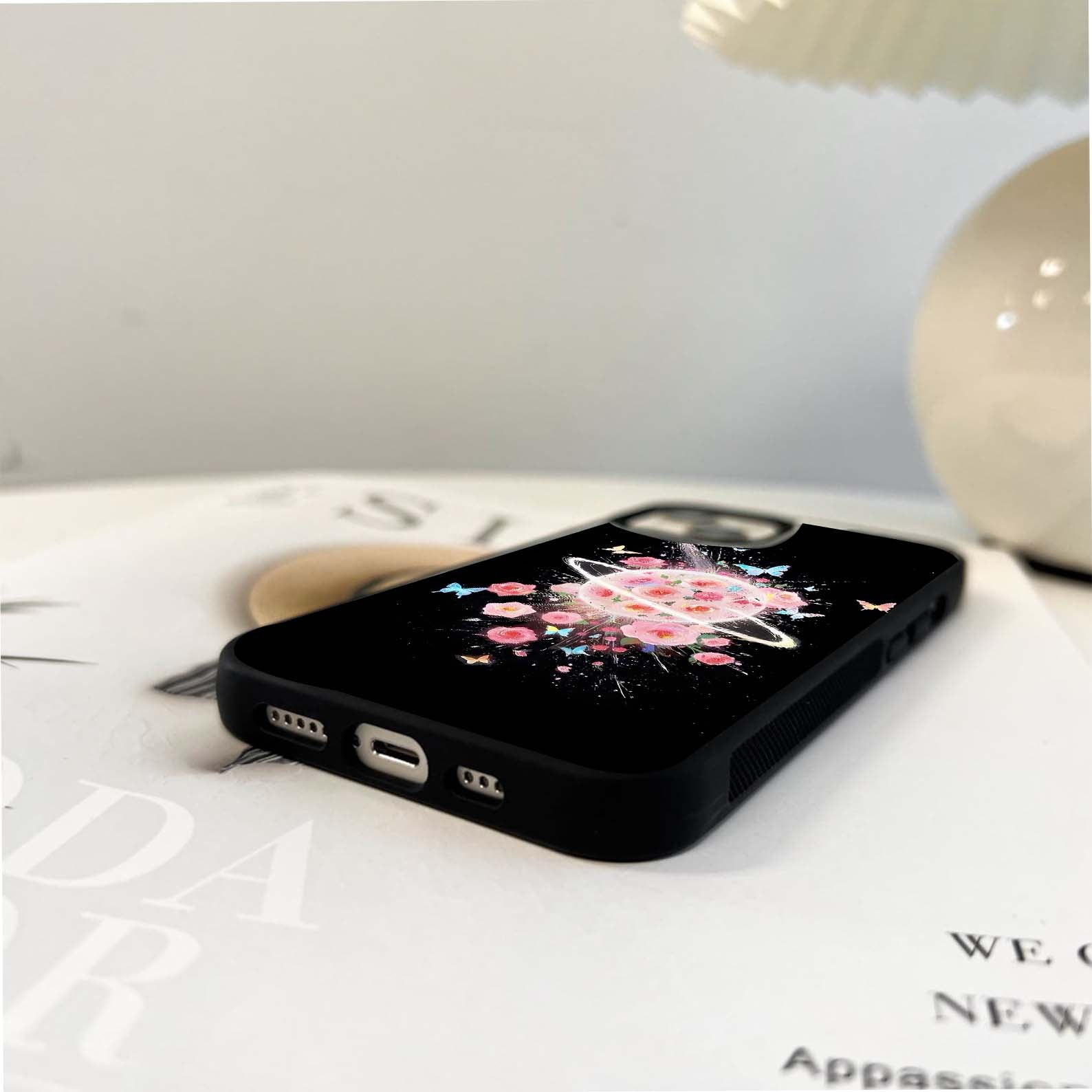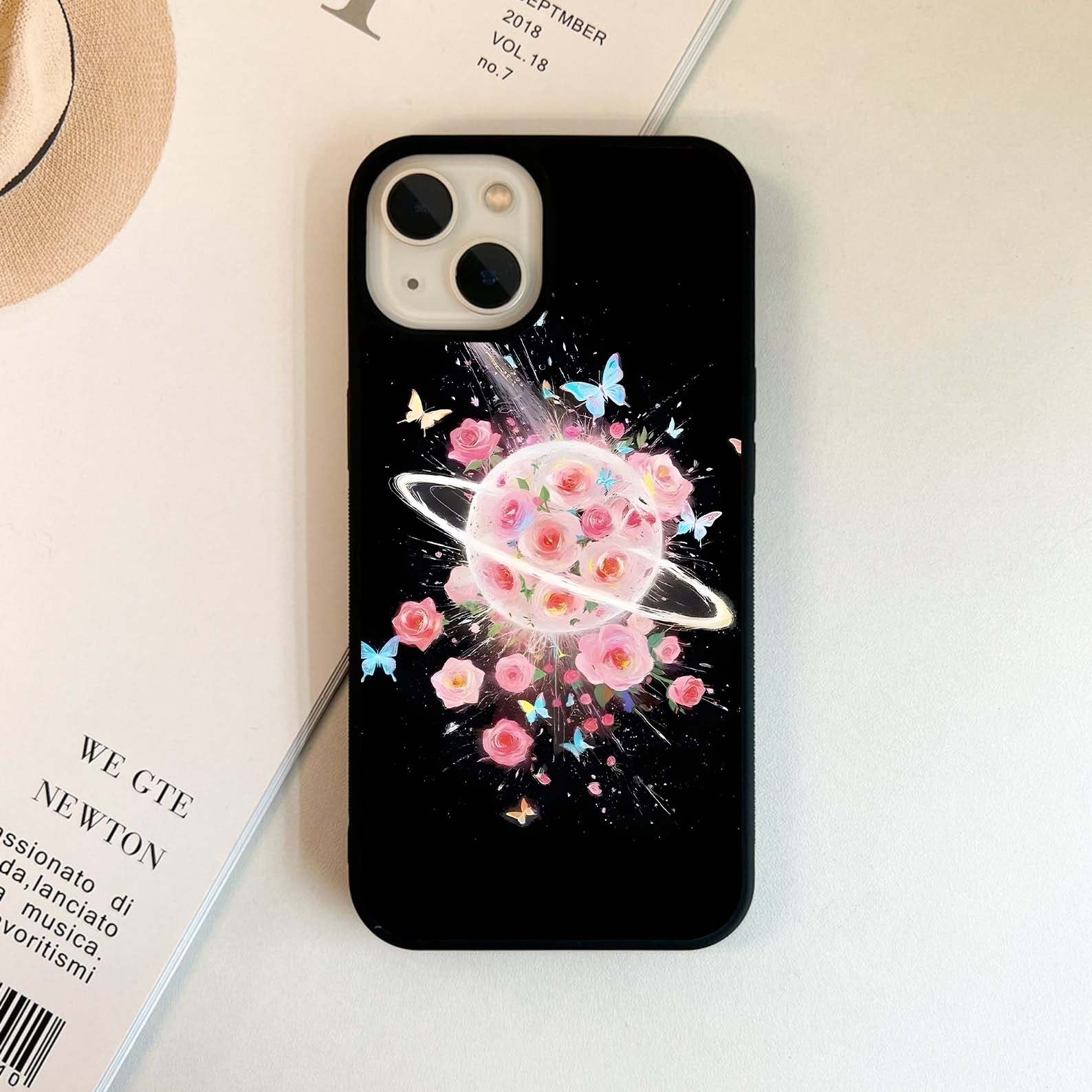 Planet Full of Roses and Butterflies Glass Case