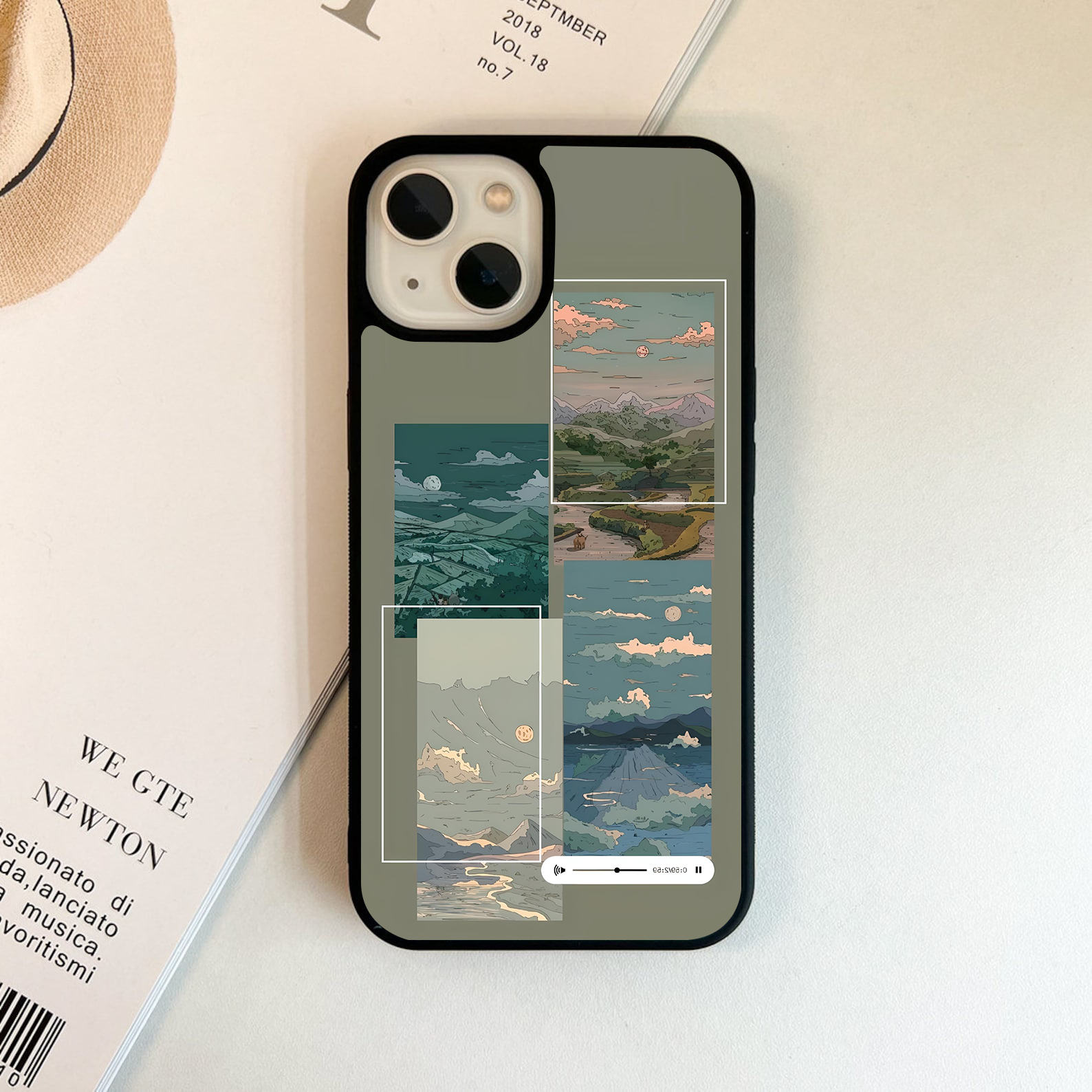 Scenery Collages with moon Glass Case