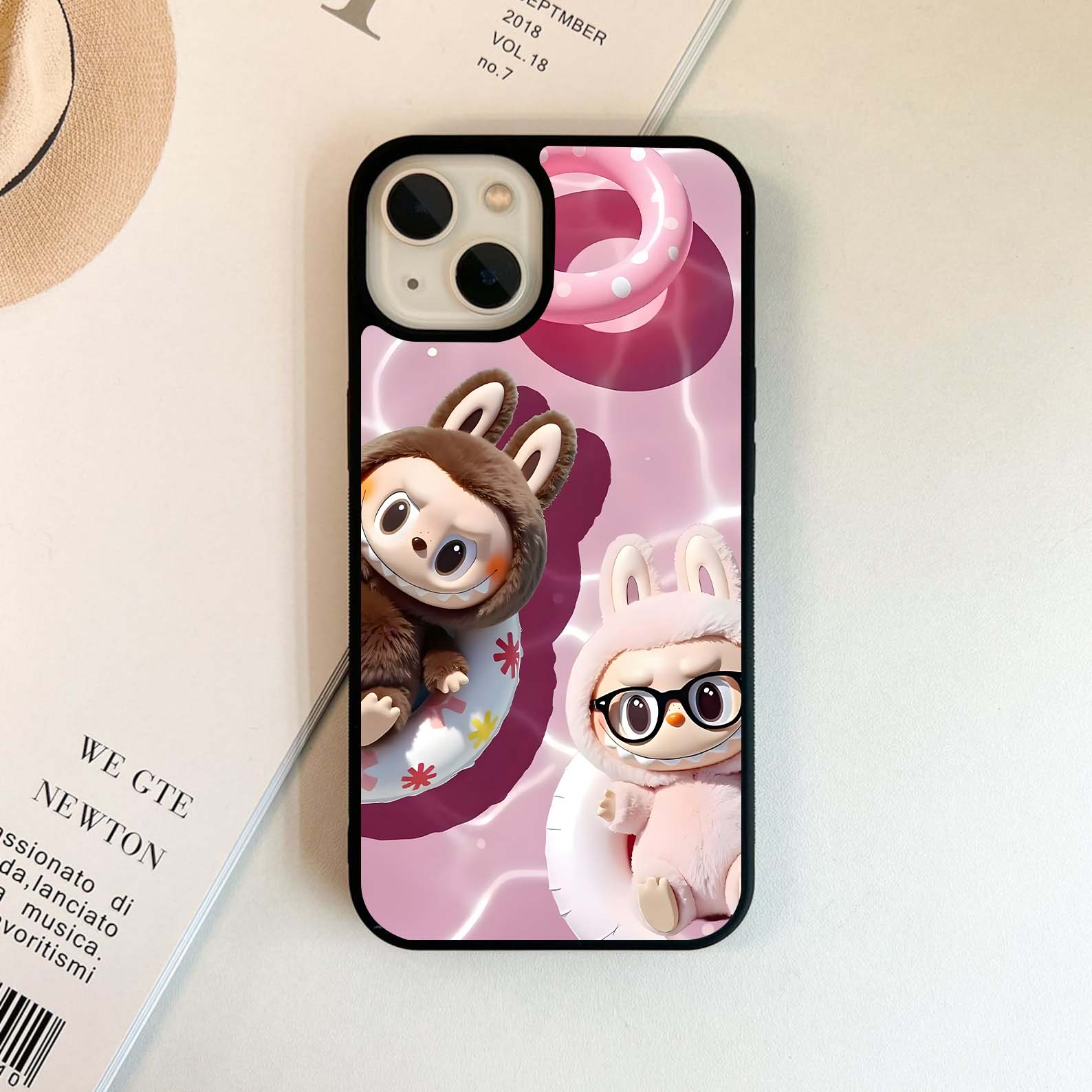 Cute Couple V2 Custom Name Glass Case ( 2 FREE Keychains )